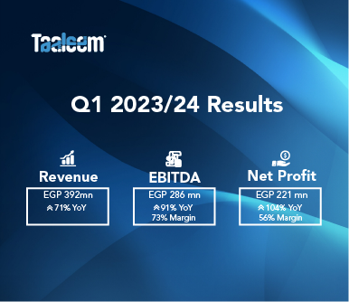 • Total revenue came in at EGP 392mn, achieving a growth of 71% YoY.